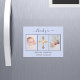 Adicione 2 ou 3 das suas próprias fotos e uma nota de agradecimento. Um fundo azul claro com texto e quadro pretos.