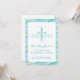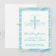 Este convite do Batismo, Natal moderno, apresenta uma cruz e um fundo com estilo de aquarela azul e verde. Pode ser personalizado para a ocasião cristã especial do seu filho.