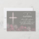 Este elegante batismo 3,5x5, batizante cartão de convite, apresenta flores cruzes e margaridas ao longo do fundo. A cor e o texto de fundo podem ser personalizados de acordo com o seu gosto pela sua ocasião religiosa especial.
