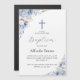 Convite Batismo De Bebê Floral Azul E Elegante De Aquarela