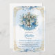 O Dourado Convite à Frame para o batizamento de um garoto, Flores Azuis da Cruz de Madeira, é uma escolha encantadora para celebrar esta ocasião especial. Com sua cruz russa de madeira enfeitada com delicadas flores azuis e uma elegante estrutura de ouro, esse convite captura perfeitamente a alegria e o significado desse evento marco. A combinação de elementos da terra e cores suaves dá uma sensação quente e convidativa, fazer uma maneira doce e na moda de convidar seus entes queridos a compartilhar na celebração do dia batizante de seu pequeno. Este convite irradia um senso de tradição e de calor, estabelecendo o tom para uma memorável e emocionante reunião com a família e amigos para abençoar e acolher o mais novo membro da sua família no mundo.