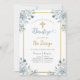 Buquê azul batismo convite para garoto, invitacion para bautismo de niño con ramo azul