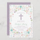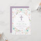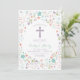 Este convite personalizável de batismo (batizante) bonito apresenta um quadro colorido de flores pastéis ilustradas e uma cruz correspondente. O nome, data, local e detalhes do seu evento especial podem ser personalizados para sua ocasião religiosa especial.