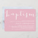 Convide os convidados a testemunhar o batismo da sua criança com estes belos convites para batismos cor-de-rosa, com caligrafia clássica na frente com texto totalmente personalizável, e uma foto de cheio opcional na parte de trás.