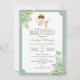 Celebre o Batismo do seu bebê com este Convite Angel do Green Leaves Boy. Este convite é perfeito para uma cerimônia religiosa cristã. Celebra el Bautizo de tu bebé con esta Invitación de angelito con Hojas Verdes. Esta invitación es perfeta para una ceremonia religiosa de Bautizo.