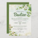 Celebre esta ocasião religiosa com este elegante convite ao Batismo. Com folhas verdes e flores brancas, é perfeito para qualquer Natal católico. Disponível em espanhol. Celebra el Bautizo con esta invitación que tiene hojas verdes y Flancas.