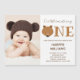 Nosso ursinho está fazendo um primeiro convite magnético de aniversário de bebê com um modelo fotográfico. Este convite é castanho e branco, com a palavra "Um" em letras grandes, ilustrando o rosto de urso como primeira letra da palavra. Simplesmente, personalize este convite com a sua fotografia e informação, adicione-o ao seu carrinho e feliz aniversário ao seu bebê maravilhoso! Bear Foto Animal Primeiro Aniversário Design de Convite Magnético Feriado | ©Melissa Patton — Artista/Ilustrator