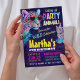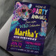 Prepare-se para rugir com entusiasmo! Este convite de festas vibrante e vibrante apresenta um leopardo na moda com talo retrô e cores surpreendentes perfeitas para uma festa de aniversário de crianças selvagens. Projetado com fontes divertidas, realces de neon e um fundo enérgico de corante de gravata, este convite define o tom para uma festa inesquecível. Personalize com o nome do seu filho, a data da festa e os detalhes de RSVP para torná-lo realmente pessoal. Ideal para amantes de os animais e animais de festa!