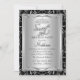 Convite de Aniversário Sweet 16 Preto & Prata. Elegante desenho damasco & tiara. Por favor, note: Todas as imagens planas, elas não têm joias reais!