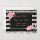 Convite Black Stripes Lace and Pink Daisies Salva a Data