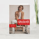 Cartão de anúncio de graduação de na moda e convite de festas apresentam um solteiro com fotos sobredimensionadas com "FORMANDO" como um grande ponto focal. Personalize o texto personalizado moderno com seu nome de formando, escola e ano de aula. Esta design de cartão dobrado inclui dentro de texto de convite de festa de formatura juntamente com uma imagem de cheio. Personalize as cores das caixas na frente e o texto para combinar as cores da sua escola ou coordenar com a fotografia. Disponível nas cores da escola de vermelho, laranja, roxo, verde, azul, laranja queimada, marrom, ouro e preto. Produtos correspondentes disponíveis.