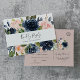 Este cartão postal RSVP, escolha de menu branco e marinho, é perfeito para um casamento floral. O clássico e elegante design apresenta marinho de aquarela azul e flores cor-de-rosa pinceladas. Este cartão postal de resposta do casamento pergunta aos convidados qual refeição eles gostariam na sua recepção.