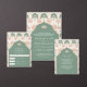 Amaze your guests with this elegant all in one Indian wedding invite featuring a beautiful gazebo on a pond with lotus flowers and vintage arches. Customize the QR Code for online RSVP or venue location.