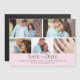 Announce your special day with elegance using the Simple Modern Custom Photo Grid Chic Wedding Save the Date magnetic Card. This design features a sleek and minimalist photo grid layout, allowing you to showcase five of your favorite engagement photos alongside your wedding details. With a chic and modern aesthetic, this magnetic card is perfect for couples looking to create a stylish and memorable first impression. Personalize it with your names, wedding date, location and Wedding website to give your guests a beautiful preview of your upcoming celebration. Heart details in the typography for a sweet and modern touch. Blush pink accent color block.