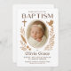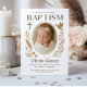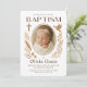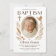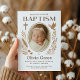 Este elegante convite batizado de acrílico boho apresenta um fundo neutro e suave, fotograma oval e símbolos religiosos desenhados à mão como uma cruz e pomba. Cercada por delicados elementos botânicos, essa design combina a simplicidade moderna com o calor espiritual. Perfeito por celebrar o batismo da sua filha de forma personalizada e na moda.