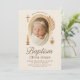 Celebre o batismo do seu pequenino com este elegante convite de vassoura com uma paleta de cor neutra quente, delicados sotaques botânicos e símbolos cristãos sagrados como a cruz, a vela, a folha de palma e o Coração Sagrado. Uma foto centralizada e fontes clássicas adicionam um toque personalizado e espiritual. Totalmente editável para o nome do seu bebê e detalhes do evento.