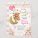 Convite de Boho Floral Rosa Bearly Wait Baby Shower