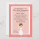 Comece a comemorar com este adorável convite para as meninas especiais Primeira Comunhão Sagrada. Tem uma borda escura e com rosas claro. no centro há um centro de rosas claro com uma borda branca à sua volta Há uma menina adorável vestindo um vestido branco de comunhão com um véu. Ela tem cabelo castanho. Veja os muitos outros itens nesta linha, como etiquetas, postagens, notas de agradecimento e muito mais.