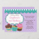 Nosso convite de aniversário bonito do cupcake é o começo perfeito para você festa de aniversário das meninas. Nossas características populares cupcakes bonitos do chocolate do convite do cupcake e da baunilha com o glacé cor-de-rosa ajustado em um fundo roxo das bolinhas com um toldo azul e branco da loja da listra na parte superior. A parte traseira do convite é um roxo de harmonização. Aperfeiçoe para uma festa de aniversario de meninas do cozimento do cozinhar do cupcake. Visite nossa loja para uma grande seleção de convites de festas de aniversários à moda & modernos para uma festa de aniversario de meninas. © Corazon Dulce