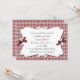 Convite vermelho e branco feito sob encomenda bonito da xadrez, com um grande olhar do país. Uma área de texto branca decorativa senta-se sobre o fundo da xadrez, obscuridade pequena doce - os arcos vermelhos decoram os dois lados da área de texto. Personalize o texto para serir suas necessidades do partido.