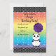 5" x 7" convite com corações bonitos do arco-íris do urso de panda desvanecem-se fundo do teste padrão, com as listras pretas com bolinhas brancas um círculo roxo do scallop mudar o ano do aniversário para o ø, òs, 3, 4, 5, 6, 7, 8, 9, 10, 11, 12, 13 14, 15, 16, 17, 18, 19, 20, 30, 40, 50, 60, 70, 80, panda que 90 a festa de aniversário temático convida