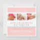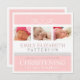 Três fotos de sua menina bonita são acentuadas com redemoinhos bonito e uma fita do falso neste design do batismo ou do baptismo. Todos os detalhes da celebração são personalizados facilmente na parte traseira.
