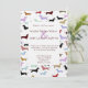 Um convite maravilhoso do casamento para o amante do Dachshund! Caracteriza muitos cães coloridos pequenos do dachshund toda em torno da beira do convite. Seu convite do casamento vai no centro. Excelente para o casal loving do divertimento!