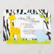 Comece seu chá de fraldas do bebé, chá de fraldas do bebé ou o chá de fraldas neutro fora do direito com nosso convite pequeno bonito do chá de fraldas da selva do safari. Nossos na moda & convite moderno caracterizam um grupo adorável do girafa e do elefante em um preto & que fundo do impressão da zebra. A parte traseira de nosso convite do chá de fraldas dos animais da selva do safari caracteriza um fundo moderno de harmonização da listra da zebra. Visite nossa loja para uma grande seleção do convite do chá de fraldas para meninos, meninas ou um chá de fraldas do ponto morto do género. design do ©Blackleaf