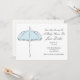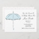 Uma bonito ilustração de um parasol azul bonito faz um doce convite que você pode personalizar. Edite o texto para transformar isso em um convite de noiva ou de chá de casamento ou em um convite de chá de fraldas.