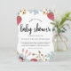Bonito convite para chás de fraldas botânicos com elementos florais coloridos e folhas rústicas.