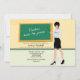 Um convite para a formatura de um professor com um quadro verde e um professor bonito com um ponteiro em sala de aula.O cartão é fácil de personalizar com seu texto, fonte, cor da fonte e escolha de seis tipos de papel.