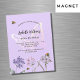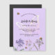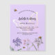 Um fundo colorido violeta e lavanda. Decorados com abelhas e pintados de flores silvestres em violeta, rosa e uma borboleta grande. Personalize e adicione um nome e detalhes da parte.