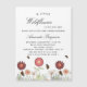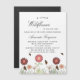 Um fundo branco. Decorado com flores silvestres pintadas em mudas, terras coloridas e borboletas. Personalize e adicione um nome e detalhes da parte.
