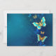 Ouro voador, borboleta de joias sobre fundo textural azul. Design com borboletas.
