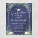 Lindos convites de festa de formatura sem foto, econômicos, impressos em papel leve de 4,5x5,6 polegadas com eucalipto aquarela e folhagens com detalhes em glitter dourado, toques ou boinas de formatura brancas e tipografia de texto moderno e sofisticado contra um fundo azul naval levemente polido. Ideais para orçamentos conservadores e para entrega manual aos convidados. ASSISTÊNCIA: Para obter ajuda com modificação/personalização do design, alteração de cor, transferência do design para outro produto ou se você gostaria de itens coordenados, entre em contato com o designer ANTES DE COMPRAR por meio da guia de MENSAGEM do Zazzle ou envie um e-mail para makeitaboutyoustore@gmail.com.