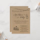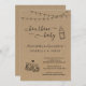 Convite Bourbon e Chá de fraldas - Luzes de cordas desenhadas à mão, garrafa de bebê, e um brinde de bourbon num fundo de kraft maravilhosamente rústico.