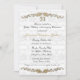 Elegante convite de festa de 50º aniversário com borda superior e inferior de rosa dourada com relevo em fundo branco com aspecto de renda. Os convites vêm completos com envelopes e escolha de papel. Também disponível na cor bege.