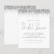 Um valor para o alternativo do ORÇAMENTO em tamanho menor de 4,5 x 5,6" de semirbrilho de 110 lbs, que é de espessura semelhante a um cartão postal (no entanto, não é adequado para uso como cartão postal). POR FAVOR, OBSERVE QUE HÁ UM convite por folha. Convite Branco para Chá de panela Glitter Silver Orçamento. Glitzy elegance com uma falso borda falsa no topo de ambos os lados e cabeçalho de ocasião em um roteiro informal definido. Personalize facilmente o resto do texto para seus próprios detalhes.