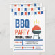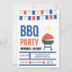 Um convite festivo do assado com as bandeiras vermelhas, brancas e azuis do partido e uma grade do assado. (<a href='https://www.freepik.com/free-vector/bbq-party-invitation-in-flat-design_1701190.htm'>Projetado por Freepik</a>). <br/><br/>O cartão é fácil de personalizar com seus fraseio, opções da pia batismal, do cor da pia batismal, as de papel da forma e escolha de seis tipos de papel<br/><br/>Não exatamente que você está procurando? Todos nossos produtos podem ser projetados para encontrar suas necessidades em nenhuma sobretaxa<br/><br/>Contacte-nos simplesmente em heartfelthelper@gmail.com. <br/><br/>Produtos de coordenação disponíveis: Apenas pergunte-nos!
