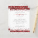 Convidado Branco da Festa de Natal Glam Red Glitter. Um alternativo de 4,5 pol x 5,6 pol com preço inferior. Disponível em um STOCK DE CARTÃO SEMI GLOSS 110 lb, que é a opção padrão (recomendada para convites), OU um STOCK DE PAPEL THINNER SATIN FINISH 80 lb (ideal para gabinetes). Os envelopes são um extra opcional e são ligeiramente maiores que o tamanho da placa. Uma borda de cintilação vermelha, massageada, está em cada lado superior e inferior, com um fundo branco, e o Natal está em um script de escrita manual em vermelho. Personalize facilmente o texto para seus próprios detalhes. Você também pode alterar as cores do texto e do plano de fundo por meio da opção personalizar mais, se desejar.