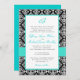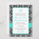 Convite branco preto do casamento de turquesa do