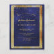 Um convite de festa de 30 anos moderno e elegante para homens. Um fundo azul escuro, azul-marinho. A cor azul é irregular. Com uma moldura dourada falsa e confetes dourados, letras douradas. Modelos para as informações da sua festa.