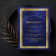 Um cartão de convite de festas moderno e moderno para homens, caras, homens. Um fundo azul escuro, azul marinho. A cor azul é irregular. Com uma falso moldura dourada e um sprinkle confetti de ouro, letras coloridas de ouro. Modelos para informações sobre a sua parte. Traseira: design de cartão postal simples.