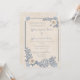 Um design de convite suave e elegante inspirado na beleza da costa. Delicadas flores em creme são combinadas com elementos botânicos em azul suave e sutilíssimos acentos de conchas marinhas, criando uma estética calma de praia perfeita para celebrações de verão. O fundo texturizado adiciona um toque de charme vintage, enquanto o layout arejado deixa bastante espaço para detalhes personalizados do evento.