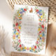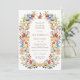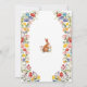 Lindos convites para uma adorável Páscoa Brunch apresentam um quadro de fronteira de flores silvestres de primavera em lindas cores rosa, vermelha, azul, verde, amarela e laranja, e uma doce ilustração de coelho. Tipografia elegante para todos os detalhes da sua Páscoa.