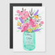 Peça aos seus entes queridos para salvar a data com estilo com este cartão magnético. Este cartão apresenta um pote de mason turquesa com um lindo e colorido buquê de aquarela. Todas as informações são escritas em um pote de mason com uma combinação de letras serifadas e caligrafia. A personalização é muito fácil com apenas um clique no botão.