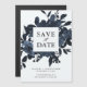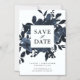 Belo buquê azul-rústico floral com um fundo branco azul simples e um casamento chic salvando o anúncio da data.