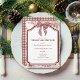 Ponha o tom para uma reunião de feriado quente e elegante com este convite de almoço de Natal. Um fundo de pelúcia francês de eterno burgundy é emparelhado com um painel do centro de creme, perfeito para os detalhes do seu partido em fontes na moda Lucia e Playfair. Um encantador arco de gingham adiciona um doce toque sazonal, enquanto o dorso apresenta um padrão coordenado de burgundy gingham. Ideal para bruxas festivas, festas de férias ou comemorações da manhã de Natal com familiares e amigos.