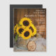 Convide os convidados para a cerimônia de verão ou casamento de outono com o encantador convite magnético para casamento do Sunflower e jardim. Este bonito ímã de casamento, relaxado e rústico, personalizado apresenta uma fotografia floral quase melhorada digitalmente de um buquê de flores de girassol amarelas em uma lata de água de prata, véu branco de brasa, lenço vintage aparado de lenço e fatia natural de madeira com a palavra LOVE com uma toca e madeira castanha e intacta.