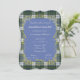 Tartan de Vestido Escocês Campbell Antigo Original com moldura em cor dourada falsa e fundo azul. Completo e pronto para personalizar com os detalhes da sua festa de casamento. Este convite vem com envelopes brancos padrão, se desejar, ou há um envelope correspondente na minha loja em tartan.